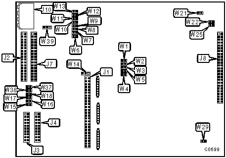 Jumpers W15, W16, W17, W18, W37, W38, W39 refer to flexible disk drives and apply only to models 7200 & 7400.