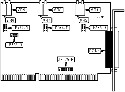 Note: A total of 256 base address settings are available. The jumpers are a binary representation of the decimal memory addresses. JP1/A is the Most Significant Bit and jumper JP1/H is the Least Significant Bit. The jumpers have the following decimal values: JP1/A=2048, JP1/B=1024, JP1/C=512, JP1/D=256, JP1/E=128, JP1/F=64, JP1/G=32, JP1/H=16. Open the jumpers and add the values of the jumpers that are open to obtain the correct memory address. (Open=1, Closed=0)