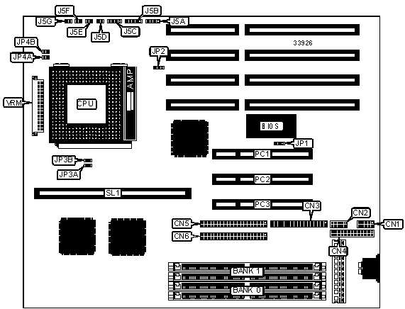 32-bit PCI slots (3), floppy drive interface, EIDE interfaces (2), parallel port, serial ports (2), cache slot, VRM connector |
