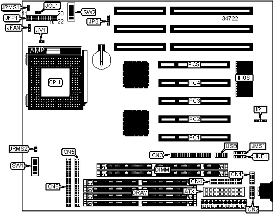 Note: Board accepts EDO memory. Do not mix SIMMs & DIMMs. | ||