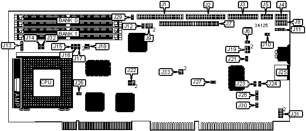 Note: Board accepts 256KB/512KB cache. The location and chip sizes are unidentified. |