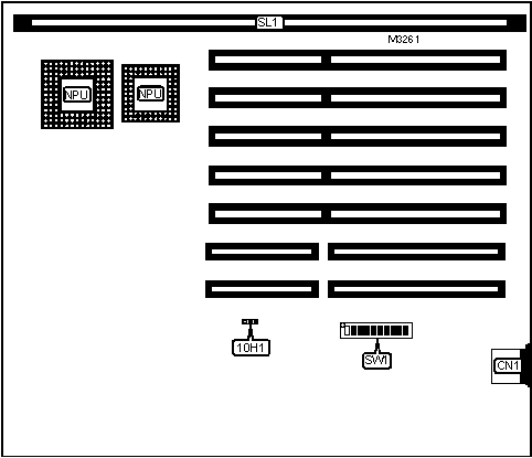 Note: 2MB memory is factory installed and is not configurable. The location is unidentified. To increase memory size, install memory card at SL1.