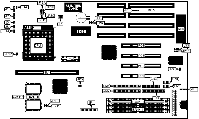 Note: Board accepts EDO memory. Board also accepts x 32 SIMMs. Banks are interchangeable. | ||
