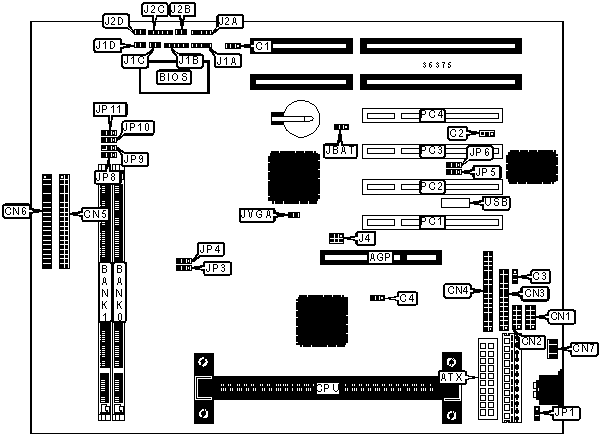 Note: Board accepts SDRAM & PC100 memory.