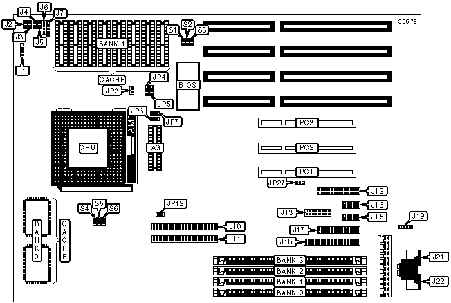 | VGA feature connector | J12 | 32-bit PCI slots | PC1 - PC3 |